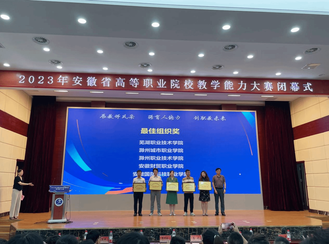 7月9日,由安徽省教育厅主办的2023年安徽省高等职业院校教学能力比赛圆满落下帷幕。本次大赛共有65所高职院校报送500件参赛作品,参赛教师共计1991人。永利官网共推荐11件作品参赛,10件作品入围决赛,取得了优异成绩。同时,永利官网被大赛组委会授予“最佳组织奖”。