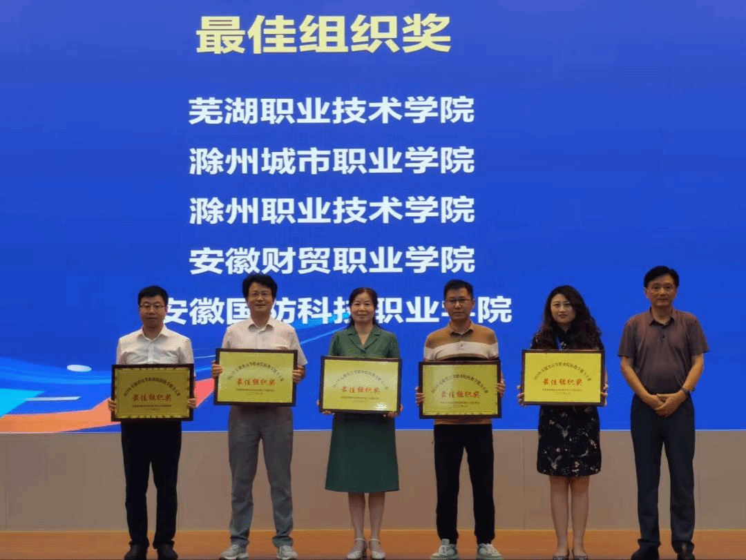 日前,安徽省教育厅公布了2023年安徽省高等职业院校教学能力大赛获奖名单,永利官网在大赛中表现优异,学校共推荐11件作品参赛,10件作品入围决赛,11件作品全部获奖,其中一等奖3项,二等奖7项,三等奖1项,是历年来永利官网参赛的最佳成绩。同时,永利官网被大赛组委会授予2023年安徽省高等职业院校教学能力大赛“最佳组织奖”。
