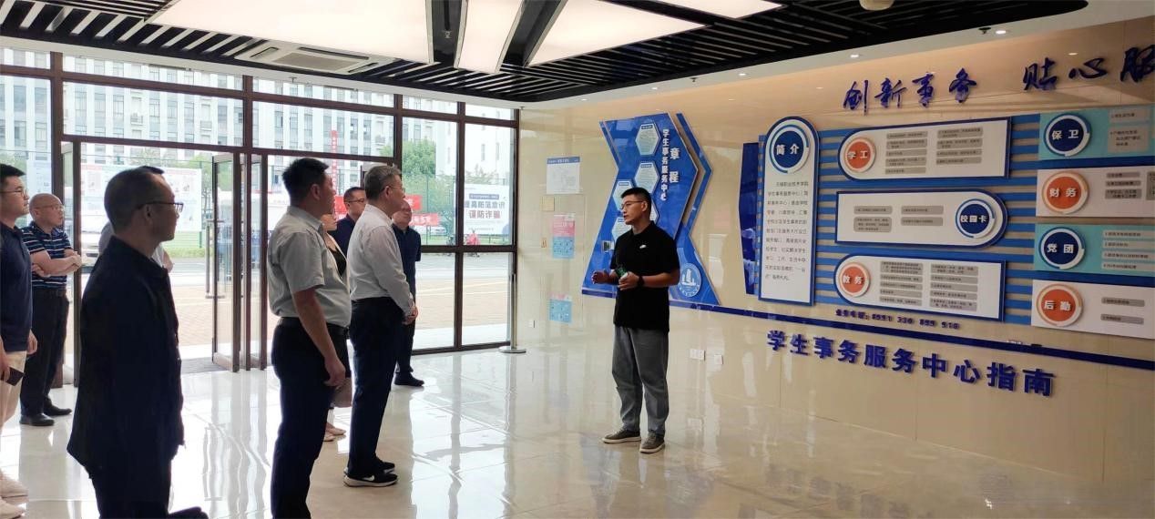在无锡职业技术学院党委办公室、校长办公室主任刘战伟等领导同志的全程陪同下,调研组一行先后参观了该校学生事务中心、“一站式”学生社区·社团文化长廊、大学生心理健康中心、机械制造工程中心及智能制造工程中心等场所。曹付忠每到一处,都认真听取场所负责人的介绍,全方位了解场所建设经验、管理运行模式及取得成效等。