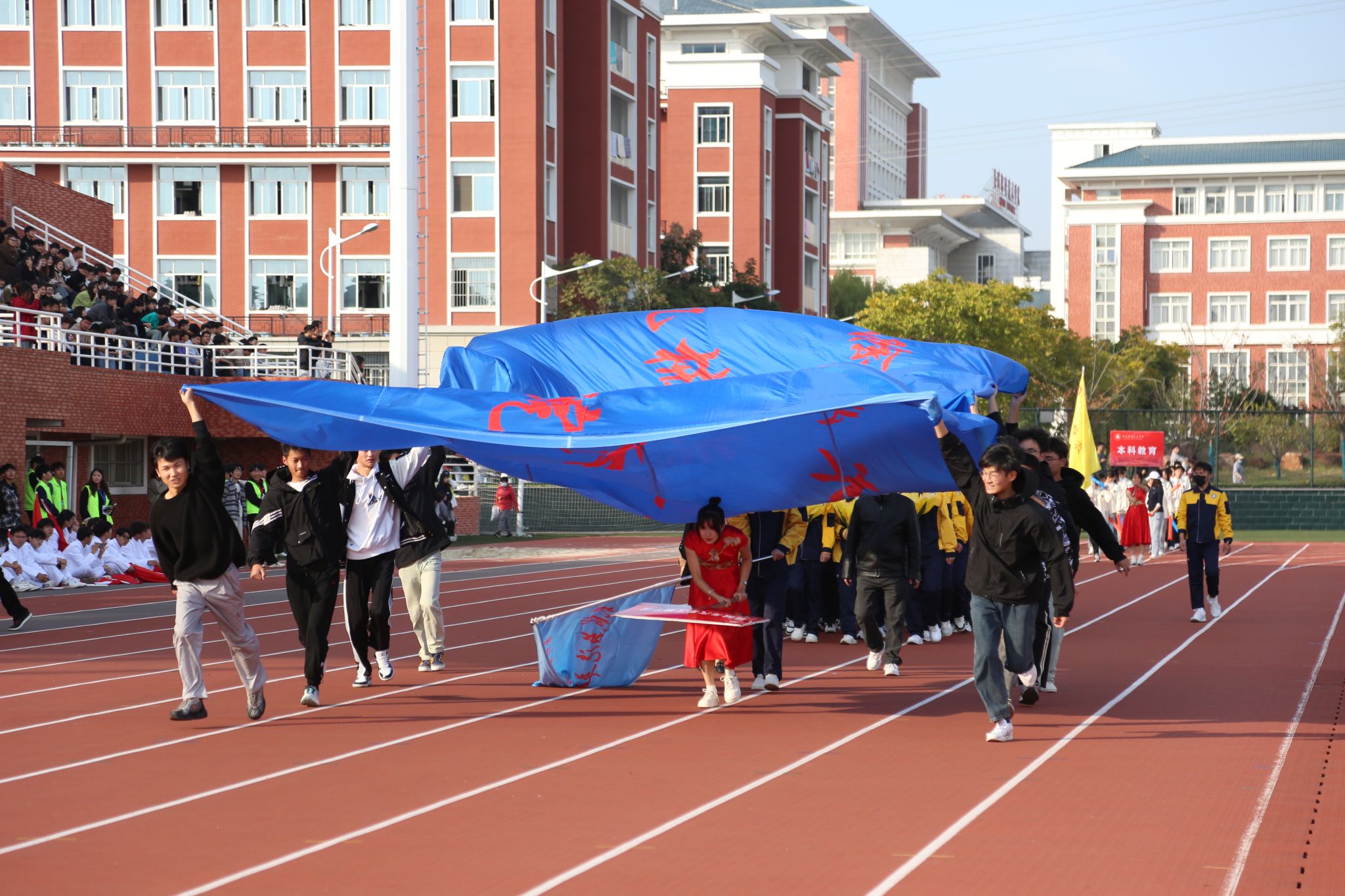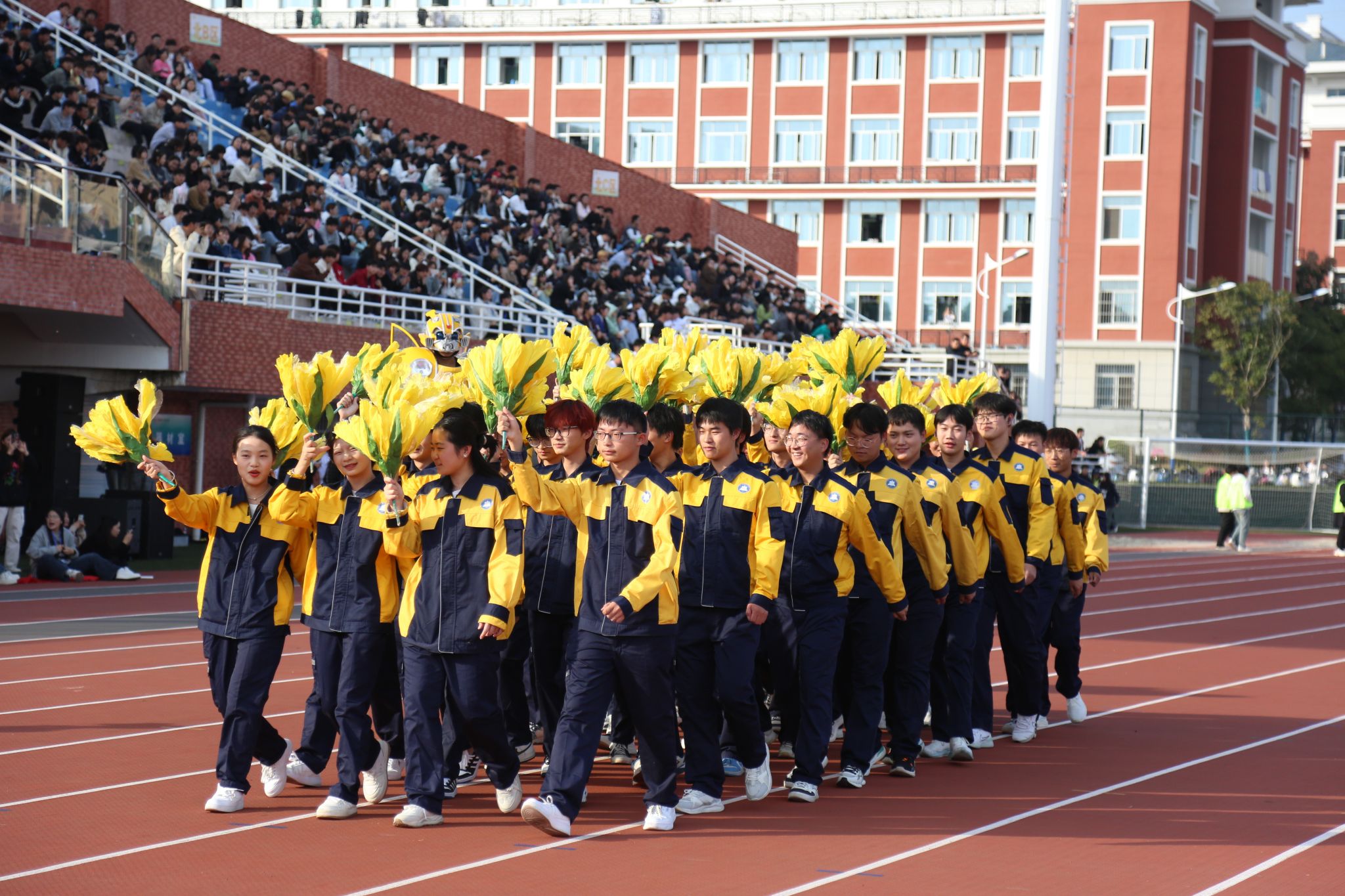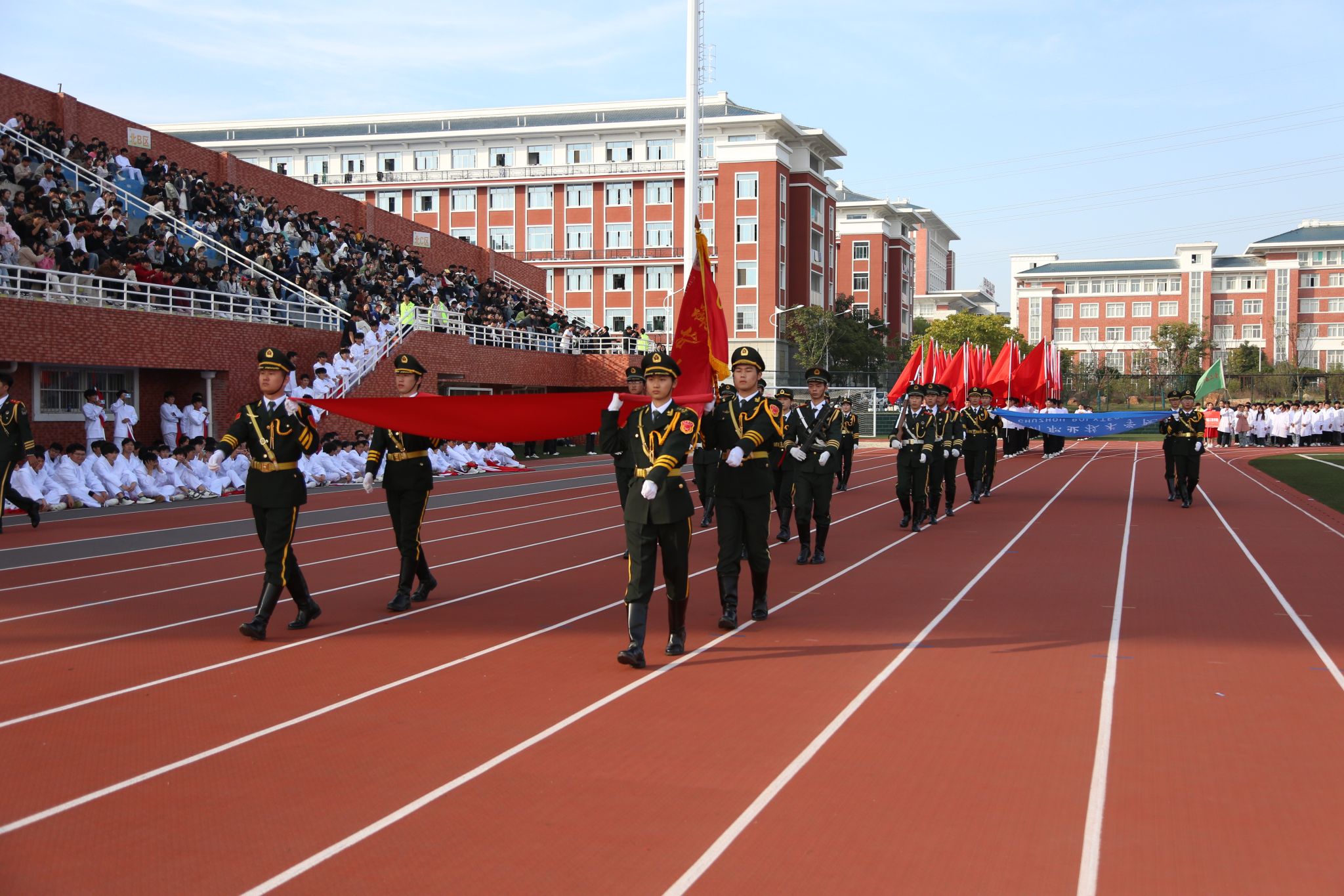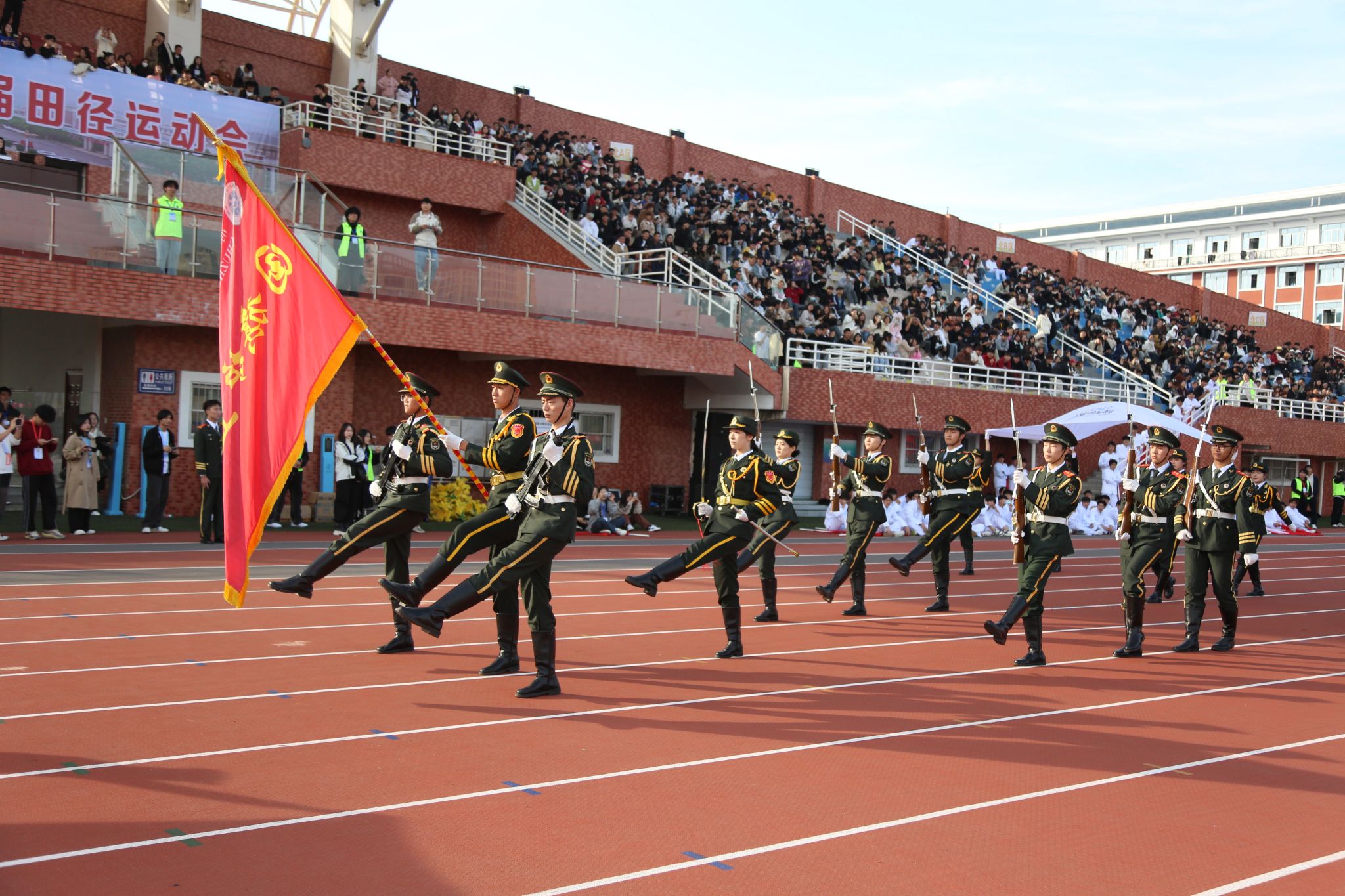 伴随着激昂的《运动员进行曲》,国旗护卫队、校旗会旗队、鲜花方队,裁判员方队、各教学院部师生代表队依次入场,他们以昂扬的姿态,喊着嘹亮的口号,迈着整齐稳重、铿锵有力的步伐走过主席台。