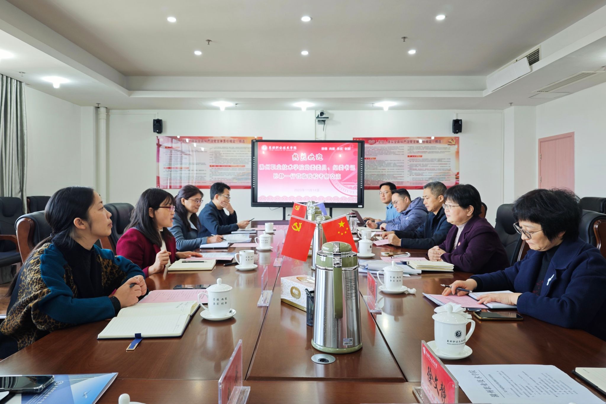 为学习省内兄弟院校在作风建设开展方面的好理念、好做法。11月14日,校党委委员、纪委书记孙静同志带队赴芜湖职业技术学院、安徽商贸职业技术学院开展调研交流。校纪委委员、基础教学部党总支书记林文静,校纪委委员、管理学院党总支副书记何文婧,纪检监察室同志随行调研。