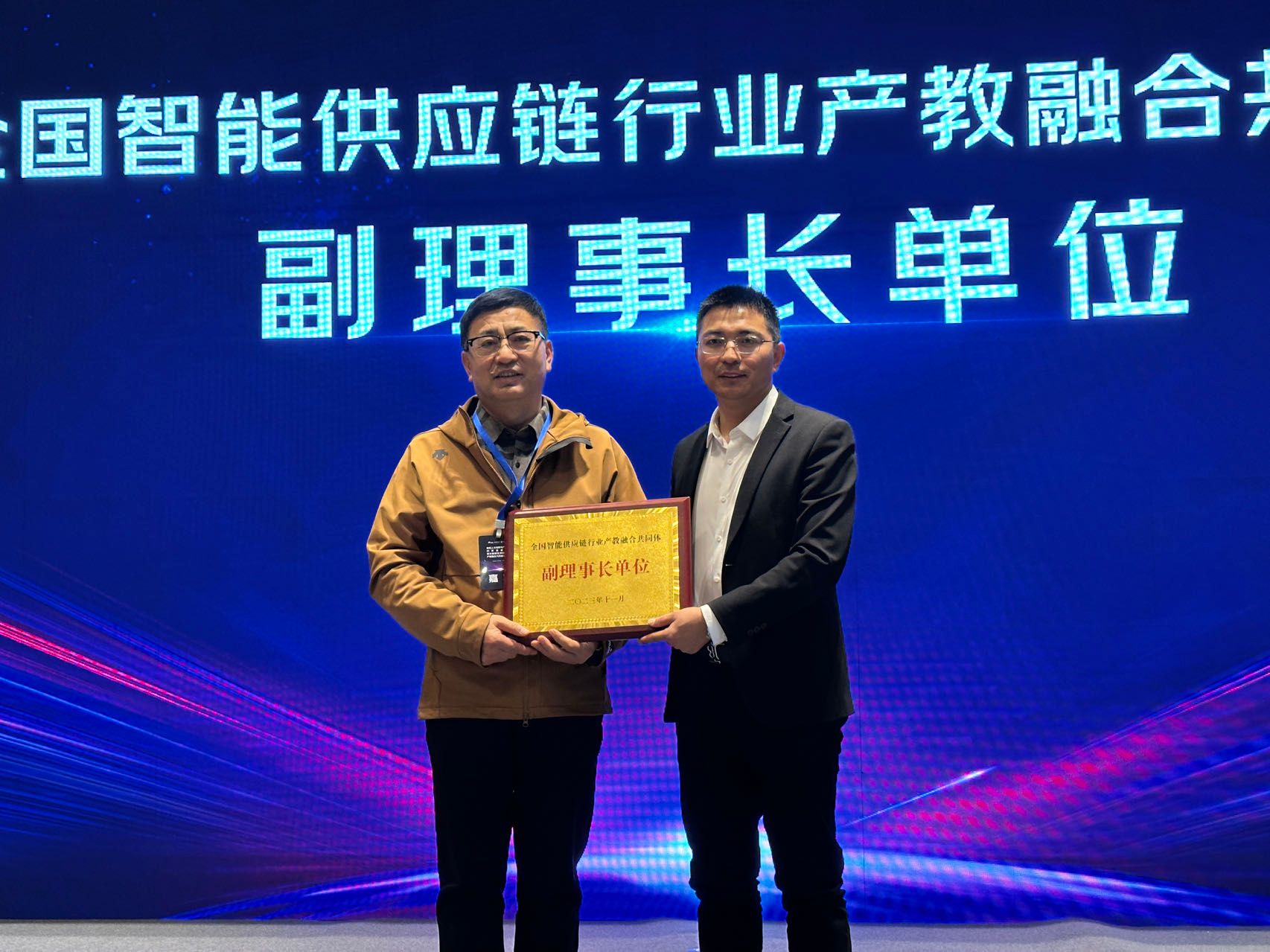永利官网应邀出席并当选为全国智能供应链行业产教融合共同体副理事长单位。校长助理、招生就业处处长、安徽滁州职业教育集团秘书长穆松代表永利官网接受大会“副理事长”单位的授牌。