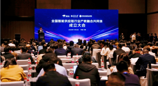 11月23日,数智人才培养与产教融合创新发展论坛暨全国智能供应链行业产教融合共同体成立大会在天津市举行,天津市委常委、市委教育工委书记王旭出席成立大会。天津市教委副主任罗延安、天津市商务局二级巡视员辛韶虹、中国物流学会副会长郭肇明、全国高等职业院校校长联席会主席董刚,天津大学、天津交通职业学院等多所高校的专家学者,以及京东集团相关负责人参加了会议。