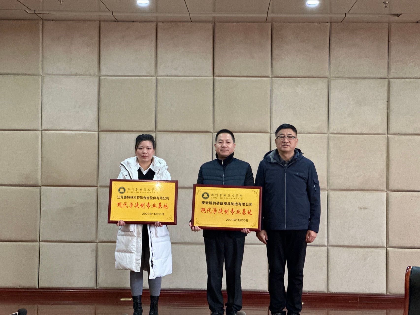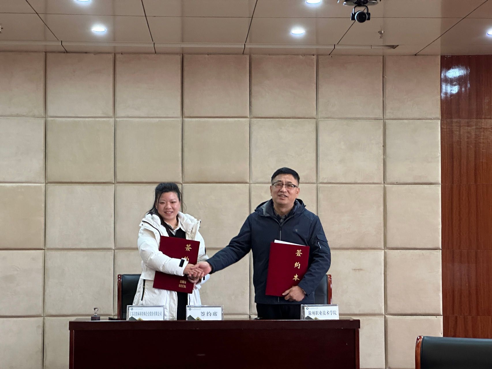 11月30日上午,学校在综合楼11楼会议室组织2023年度校企合作项目第二次集中签约,校党委委员、副校长苏有良接见签约企业代表,校长助理、招生就业处处长、滁州职教集团秘书长穆松,安徽鲲鹏装备模具制造有限公司董事长宗海啸出席签约仪式,教务处、招就处、科技处、电气工程学院、信息工程学院、机械与汽车工程学院、马克思主义学院等有关部门负责同志参加。签约仪式由招生就业处副处长周多道主持。