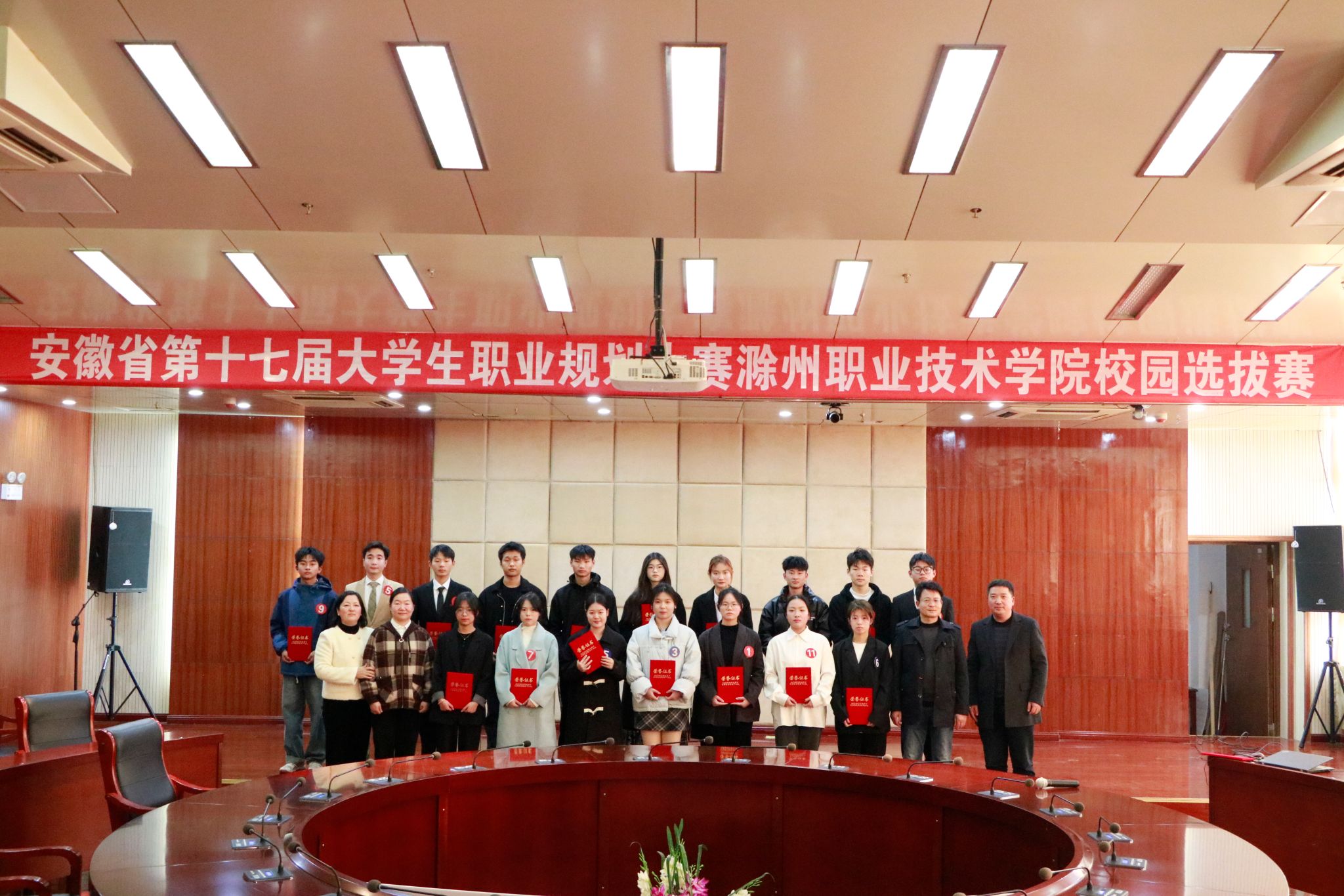 近日,首届全国大学生职业规划大赛选拔赛暨第十七届安徽省大学生职业规划大赛校园选拔赛在永利官网11楼会议室圆满举办。校党委委员、副校长苏有良出席大赛活动现场并为获奖选手颁奖。