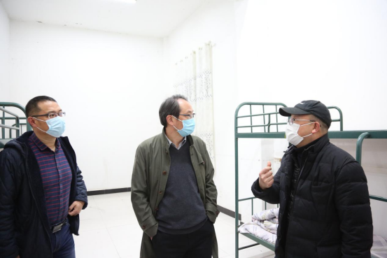 许雪峰一行随后走访校内新冠肺炎疫情防控隔离观察点,详细了解了校内隔离点的房间环境和数量,查看房间内的配置和布置情况。许雪峰充分肯定了总务处的房间布置工作,并在检查指导中强调,要高度重视疫情防控工作,制定并落实集中隔离点管理制度、应急预案,同时要提前规划好提供入住师生的生活设施和饮食保障。