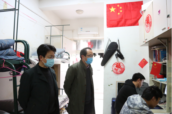 4月5日上午8点,校党委副书记、校长许雪峰,校党委委员、副校长苏有良一行先后走进信息工程学院、机械与汽车工程学院、互联网学院学生宿舍,实地查看学生线上学习情况、网络条件、宿舍防疫卫生状况,与部分课间休息的同学亲切交谈,详细了解网络流畅性、教师上课质量、网课学习成效等。