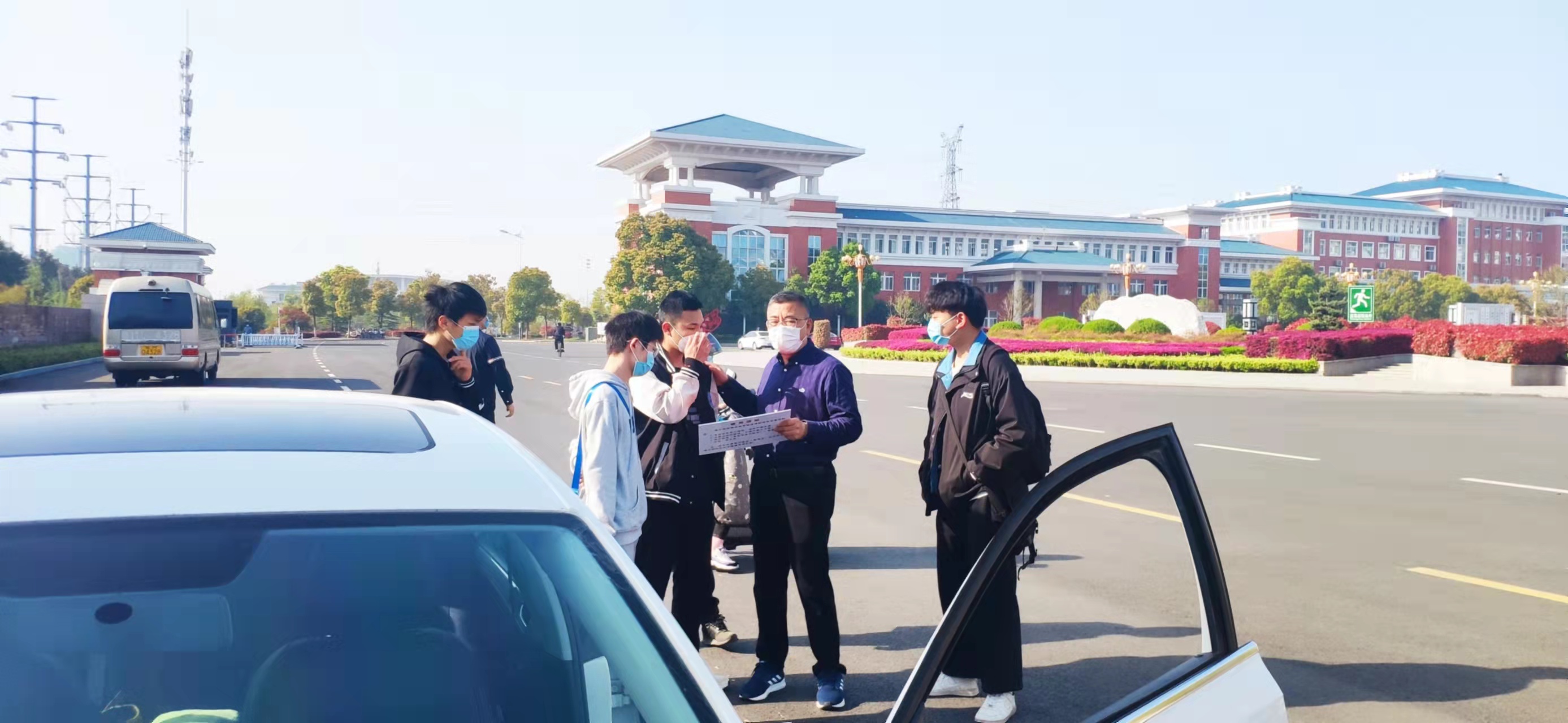 为贯彻落实滁州市新型冠状肺炎疫情防控文件精神和永利官网疫情防控工作部署,确保疫情防控期间学生实习工作健康、安全和有序。4月8日上午,校长助理、招生就业处处长穆松,保卫处处长贺建邺,食品与环境工程学院党总支书记陈震,信息工程学院院长陈开兵及招生就业处相关人员共同前往学校东门督查企业“专车、点对点”接送永利官网实习学生的落实情况。