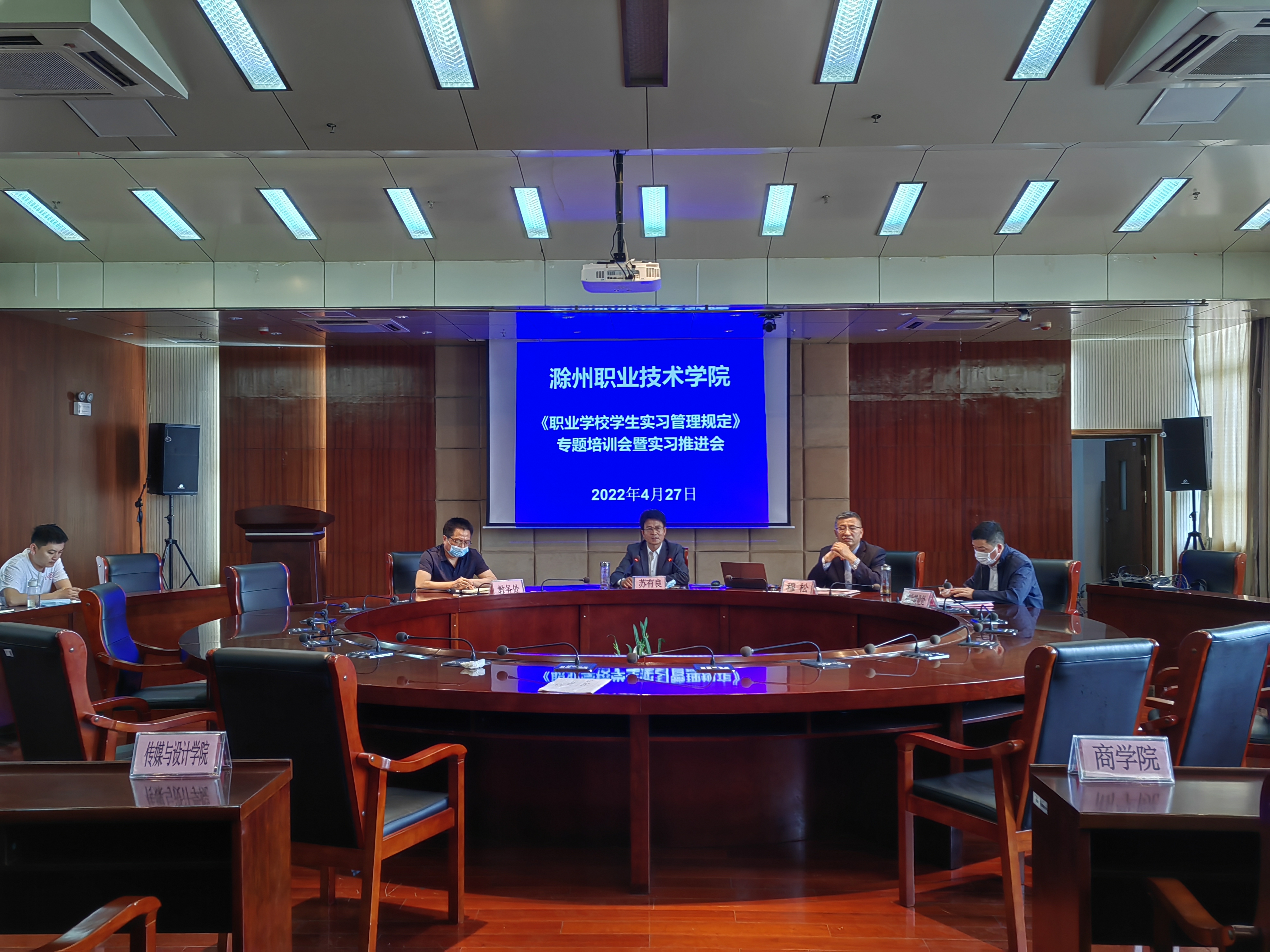 为深入贯彻教育部等八部门联合修订印发的《职业学校学生实习管理规定》(以下简称《规定》),切实规范永利官网学生实习管理工作,深刻理解《规定》精神,积极落实《规定》要求,4月27日上午,永利官网组织教务处、实验实训中心、招生就业处相关工作人员及各二级学院实习指导教师代表在综合楼11楼会议室共同收看教育部召开的《职业学校学生实习管理规定》线上专题培训会,党委委员、副校长苏有良,校长助理、招生就业处处长穆松出席会议。