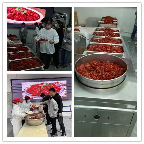此次活动历时四天,每天中午和晚上在学生食堂各楼层同时开展,每天免费发放2500斤左右。为做好此次活动开展,后勤服务中心、团委及校餐饮服务企业人员前去龙虾养殖基地调研,选购块头硕大,活蹦乱跳、肉质饱满的优质深水湖龙虾,食堂大厨们则使出浑身懈数,精心烹饪出各种特色口味,供学生们享用。