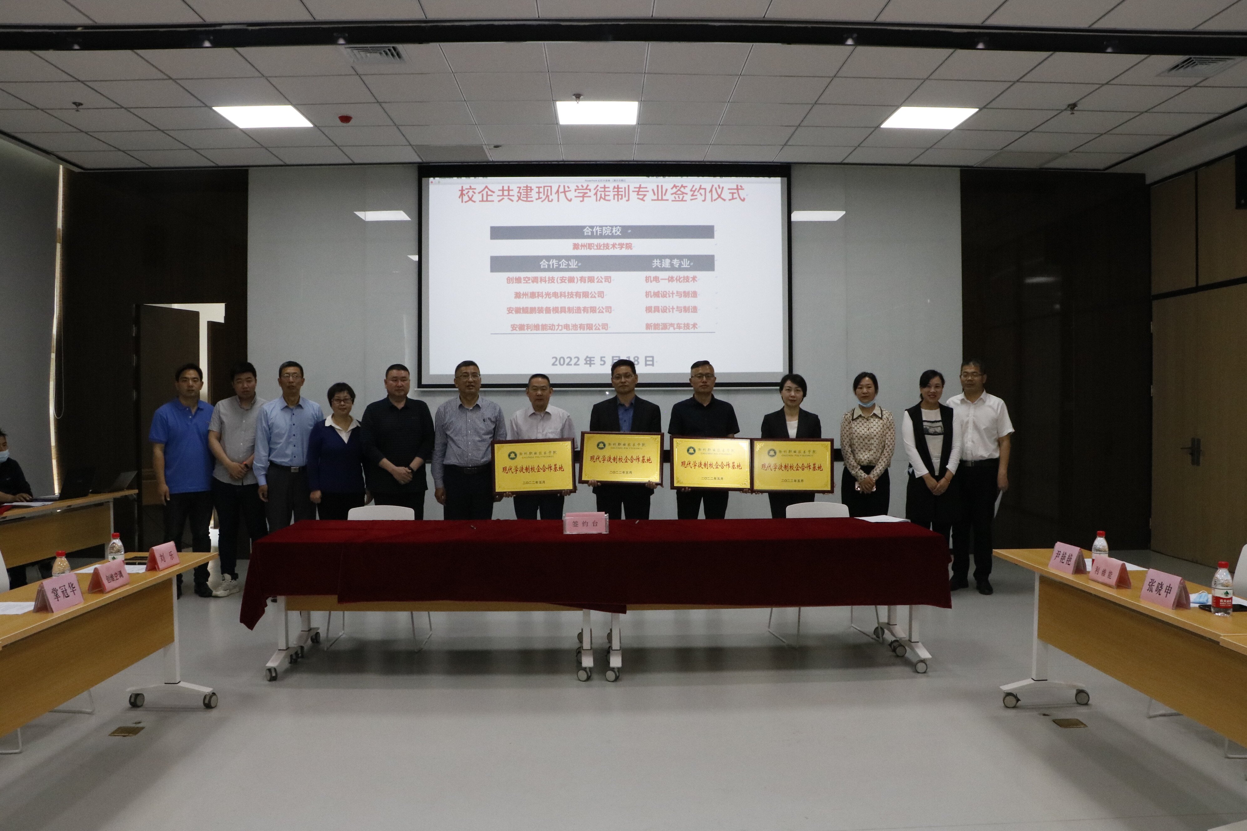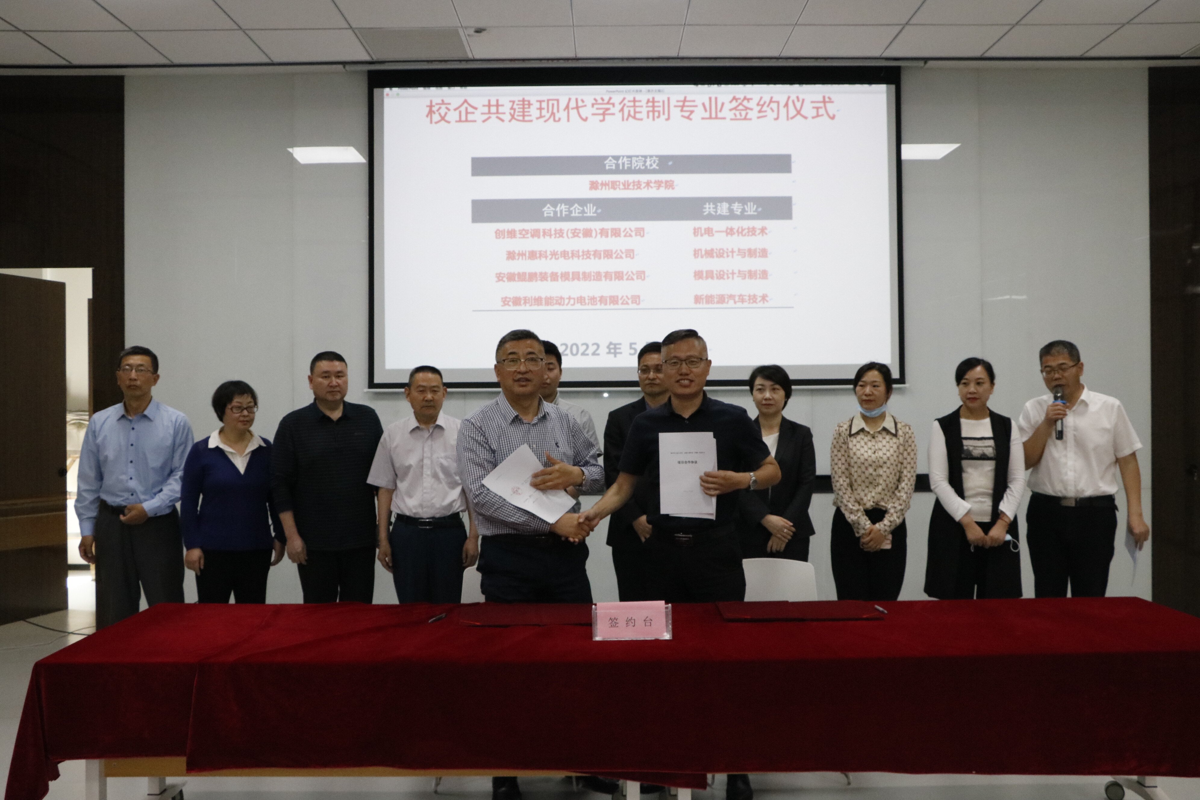 5月18日上午,永利官网在创维空调科技(安徽)有限公司举行校企共建现代学徒制专业签约授牌仪式。校长助理、招生就业处处长穆松,创维公司副总经理刘乐、滁州惠科光电科技有限公司人力资源总监张海燕、安徽鲲鹏装备模具制造有限公司企管中心主任陈怀松、安徽利维能动力电池有限公司副总经理张晓申等领导出席仪式,学校教务处、招生就业处、电气工程学院、机械与汽车工程学院等相关部门负责人参加仪式。仪式由招生就业处副处长周多道主持。