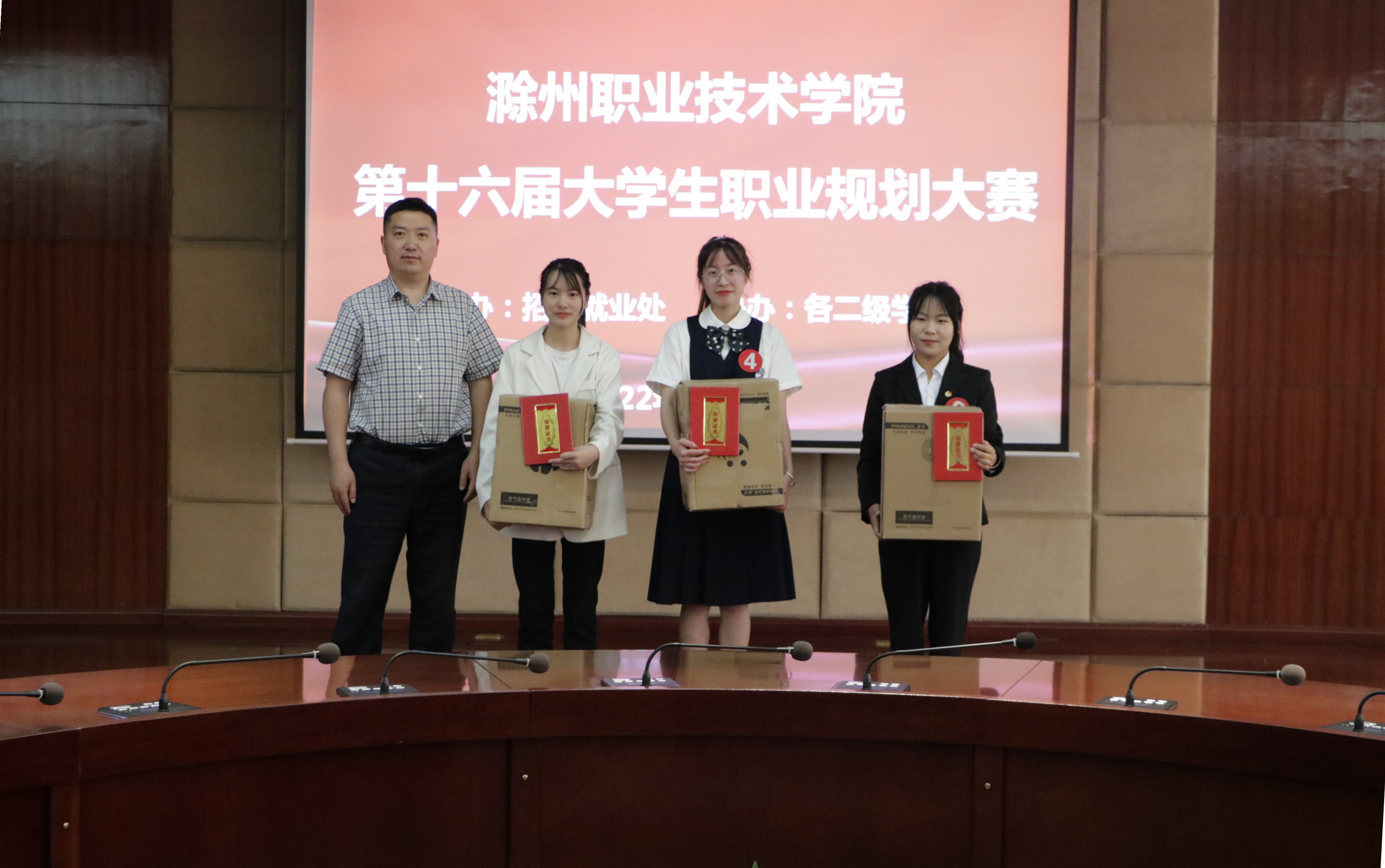 比赛中,有选手着眼于所学专业,将质量管理工程师、设计师、程序员、数控编程员、营销师等岗位设为目标职业,展现了滁职学子的工匠情怀;有选手钟情教育行业,将小学语文老师、幼儿园教师岗位设为目标职业,体现了同学们的人文情怀。最终,经过激烈的角逐,电气工程学院储书缘、互联网学院潘秋云2位同学获得一等奖,智能制造学院姜福媛等3位同学获得二等奖,商学院冯海洋等6位同学获得三等奖。电气工程学院、互联网学院获得“最佳组织奖”,穆念、侯树兰老师获得“优秀指导教师”荣誉称号。