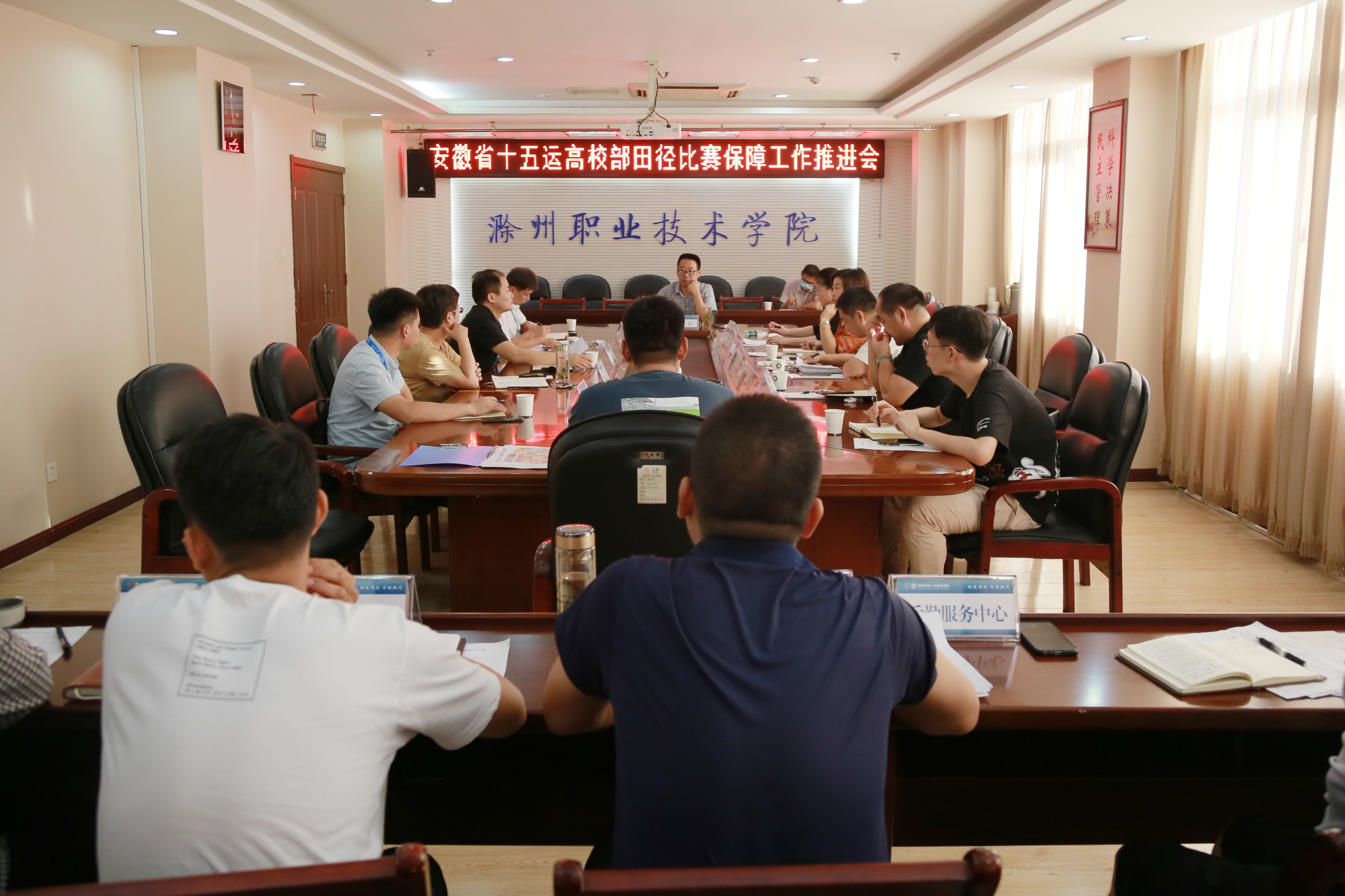 8月15日下午,安徽省第十五届运动会高校部田径比赛保障工作推进会在永利官网综合楼804会议室召开,省教育厅高校部竞赛专班成员、省教育厅卫艺处副处长葛德连,省教育厅离退休处四级调研员丁仁能,永利官网党委委员江洁出席会议,省教育厅高校部竞赛专班有关成员、市教体局、卫健委、接待处、气象局、交通局等有关单位责任人、永利官网办公室、宣传统战部、保卫处、团委、校医院、体育部等相关部门责任人参加了会议。