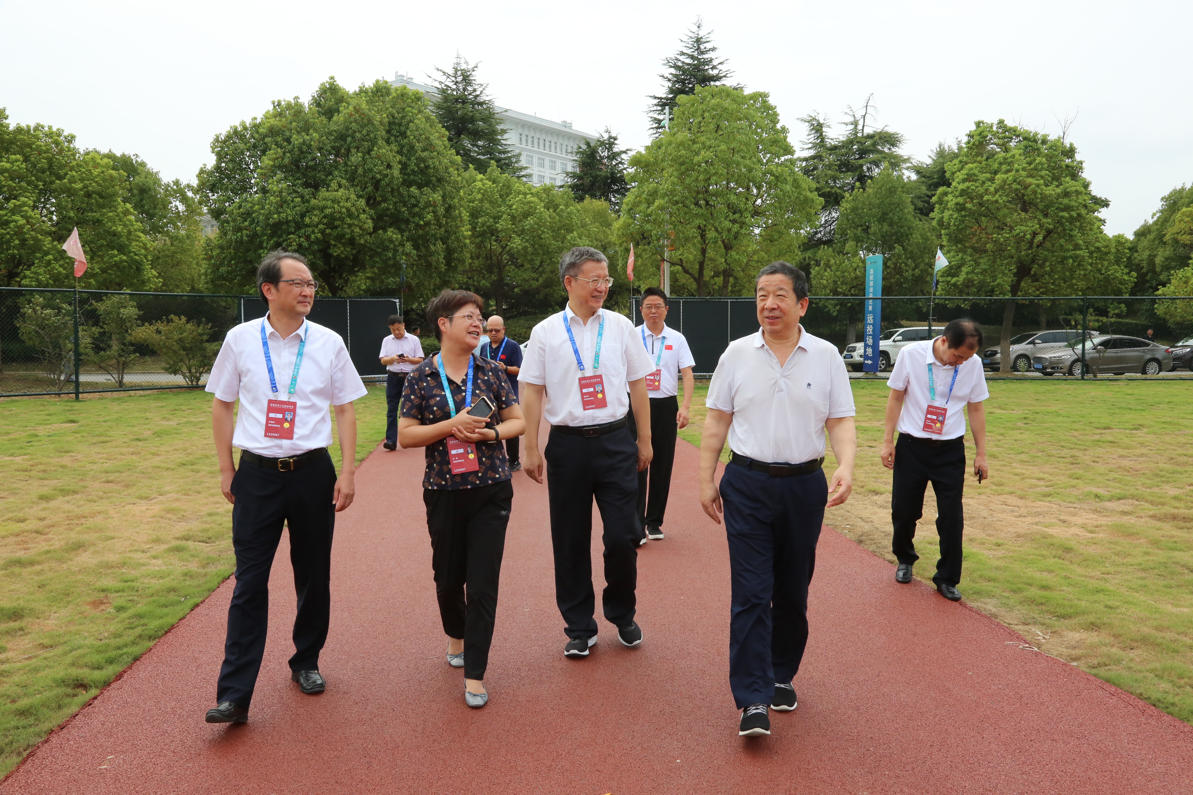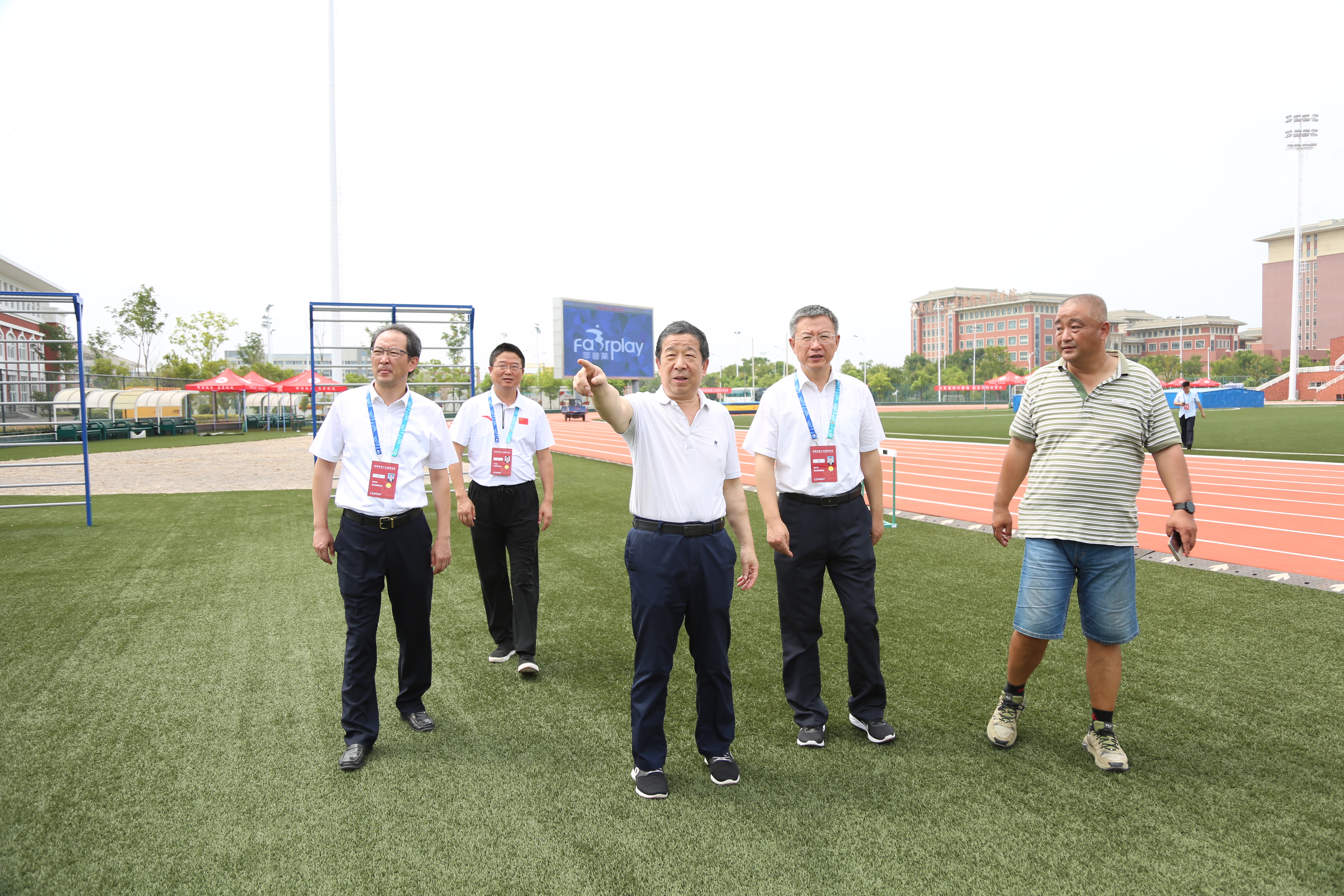8月17日上午,省委教育工委委员、省教育厅副厅长储常连,教育厅体卫艺处副处长葛德连,体卫艺处四级调研员金威威,离退休处四级调研员丁仁能等一行实地调研永利官网省十五运高校部田径比赛相关准备工作。永利官网党委书记曹付忠,党委副书记、校长许雪峰,校领导江洁、胡凼,相关部门主要负责人员陪同调研。
