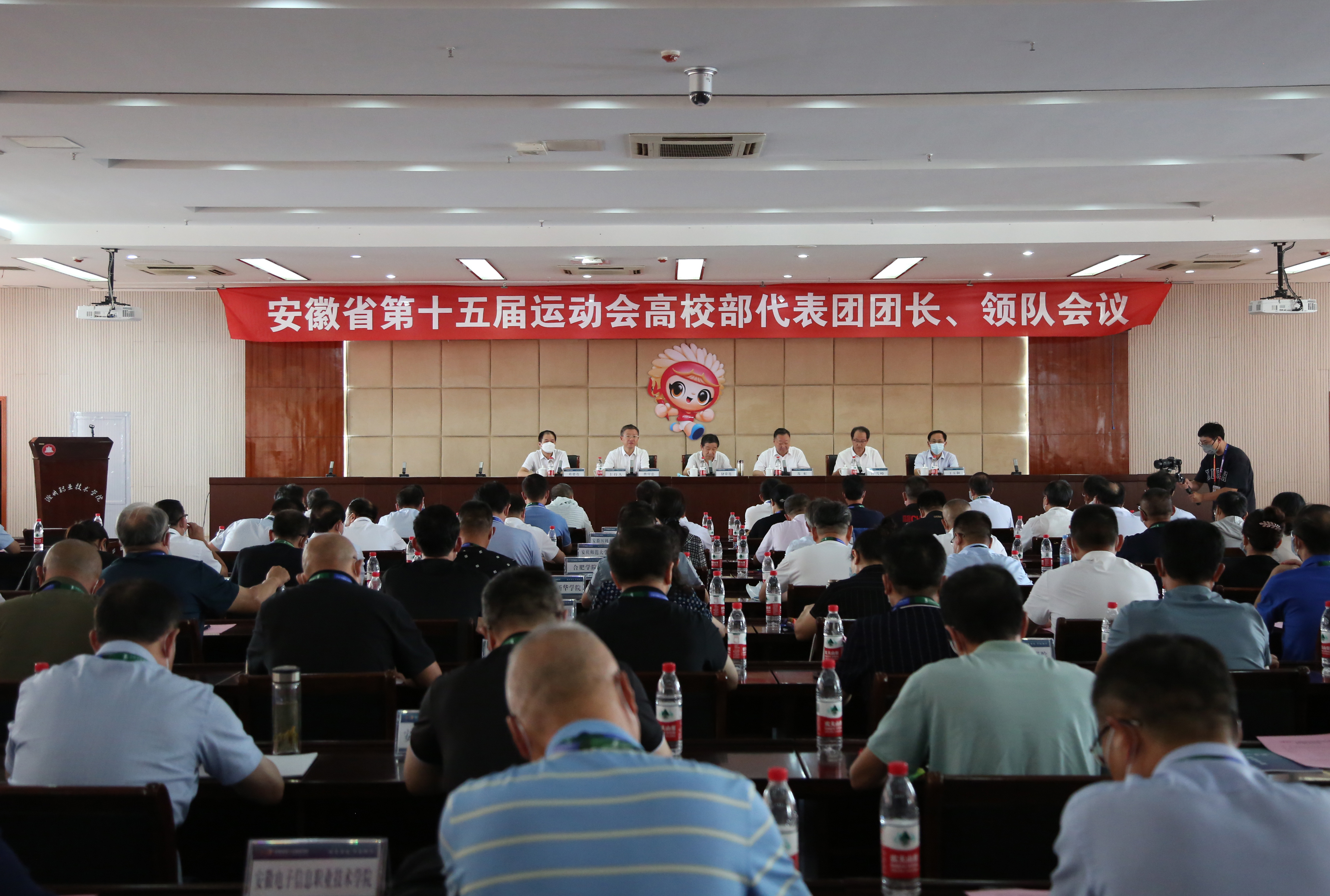 8月17日下午,安徽省第十五届运动会高校部田径比赛团长、领队会议在永利官网召开。安徽省教育厅副厅长储常连,滁州市人民政府副市长苏虹,永利官网党委书记曹付忠,党委副书记、校长许雪峰,安徽省教育厅体卫艺处副处长葛德连,滁州市教体工委书记、教体局局长王玉和出席会议,省教育厅体卫艺处、滁州市教体局相关同志及各高校代表团团长、领队参加会议。会议由曹付忠主持。