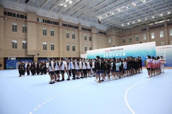 8月28日上午,安徽省第十五届运动会高校部手球比赛开赛仪式在永利官网体育馆举行。 永利官网党委书记曹付忠,省教育厅体卫艺处副处长葛德连,滁州城市职业学院党委副书记、校长汪上出席,各参赛队伍代表参加开赛仪式。开赛仪式由永利官网党委副书记、校长许雪峰主持。