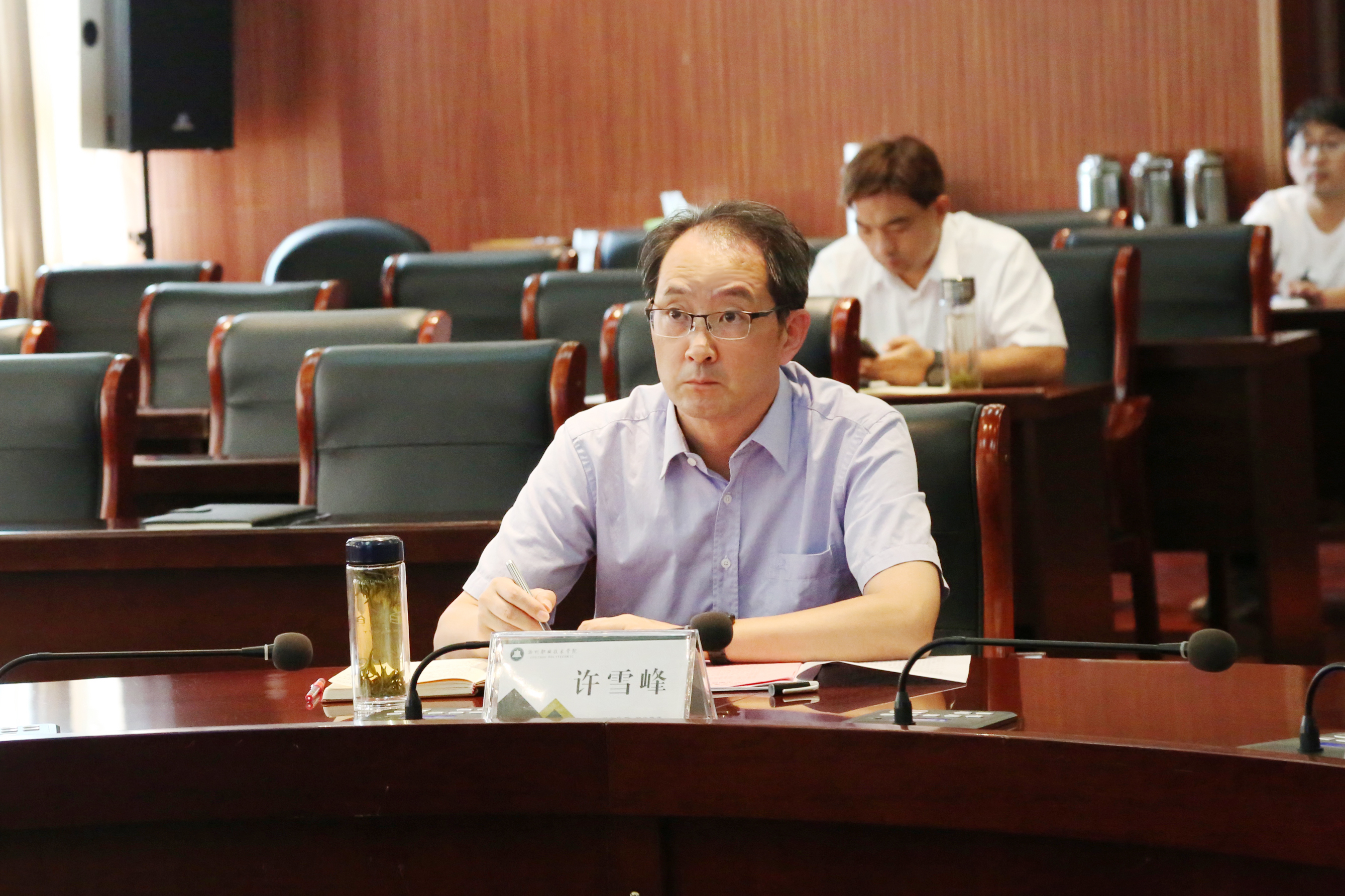 许雪峰对本次汇报项目(任务)目前成果给予了充分肯定。他强调:提质培优已进入关键阶段,接下来项目(任务)承接部门应与参与部门共同讨论,共同推进,使工作进一步做细做实。许雪峰对学校提质培优项目提出三个要求:一要拉升标杆,对照项目建设任务书和相关标准,找差距、补短板、强弱项,不要把目标定在仅仅达标上,要拉升标杆,打造精品;二要加快步伐,建设工作重在把握机遇,要以时不我待的精神推进项目建设,谋划在前、行动在前保,一旦教育部启动专项项目申报,能立刻提交申报材料;三要进一步发挥领导作用,强化调度推进,抓好工作落实,确保整体推进提质培优项目,打造优质教育教学资源,服务复合型技术技能人才培养需求。