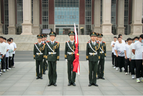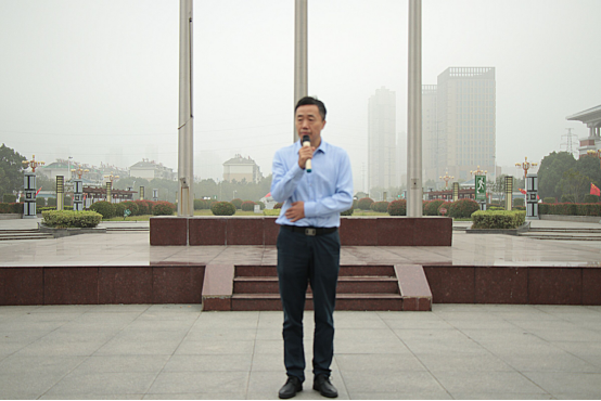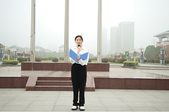 国旗护卫队踏着整齐有力的步伐,伴着雄壮的国歌声响起,五星红旗徐徐上升,全体人员注目行礼。教师代表倪子旭以及学生代表樊文静同学在国旗下进行演讲,随后由杨家庆为全体师生在国旗下上了一堂生动的微团课。杨家庆书记对在场学生提出了三点要求:一是青年学生要树立远大理想,增强做中国人的志气;二是青年学生要厚植爱国情怀,增强做中国人的骨气;三是青年学生要练就过硬本领,增强做中国人的底气。