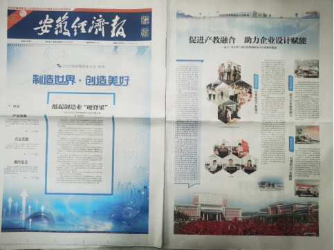 永利官网与滁州华艺柔印环保科技有限公司以“促进产教融合,助力企业设计赋能”为主题,联合承办的“华艺杯”绿色包装创新设计专项赛,获评优秀主办单位奖,安徽经济报专版宣传了本次赛事。