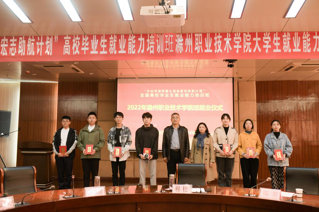 承担本次授课教师代表-滁州学院副教授陈芳,本次培训班班主任-滁州学院就业指导中心教师唐慧慧,永利官网招生就业处副处长周多道、王义利、徐云龙及招就处相关人员,参加培训的44名学员参加了结业仪式。