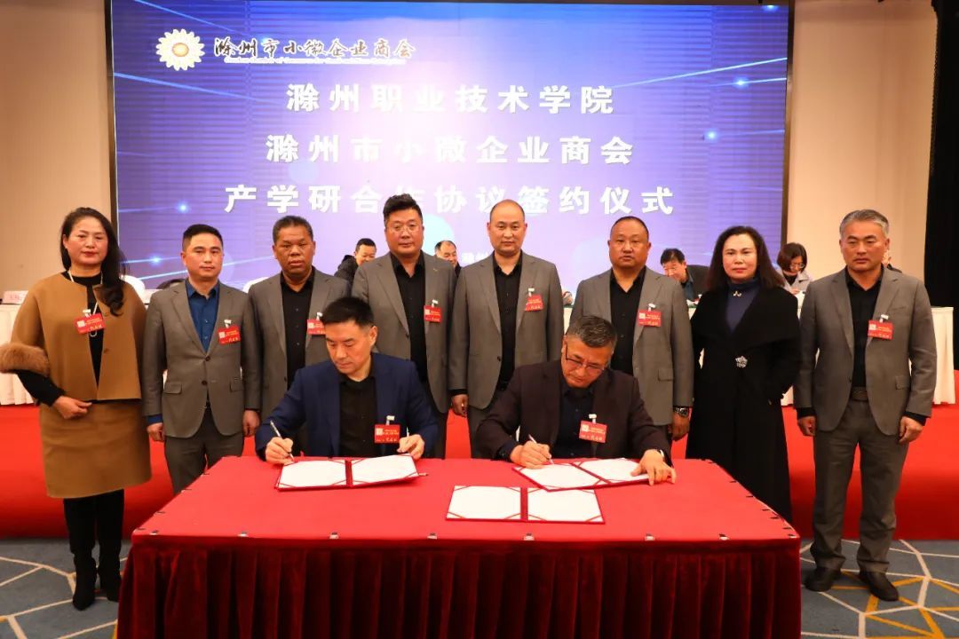 穆松代表学校与滁州市小微企业商会签订了产学研合作框架协议,并向商会颁发了永利yl23411官网产学研合作基地牌匾,穆松在讲话中指出,永利官网作为地方型高水平大学,一直以来以立德树人为办学宗旨,以服务地方为办学导向,坚持走产教融合校企合作之路,积极探索教育教学改革,不断加强专业建设,提高人才培养质量,在推进校企协同育人等方面取得了丰硕成果,多年来为滁州市企业输送了大批高素质技能型人才,为滁州市经济快速发展提供了强大的人才支持。穆松表示,正值新职业教育法颁布,此次与滁州市小微企业商会签约是落实“科教兴国”战略的有力体现,一方面有利于深化产教融合校企合作,提升人才培养质量,为永利官网学生在滁实习就业提供广阔的平台;另一方面为滁州市小微商会里120余家小微企业提供人才智力支持,帮助小微企业快速成长,形成双方互利共赢的美好局面。