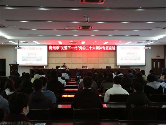 为深入学习贯彻党的二十大精神,关爱下一代的成长成才,根据市关工委统一部署和安排,2022年12月16日下午,滁州市“关爱下一代”党的二十大精神宣讲团成员原市委党校副校长、市委党校关工委主任李孙强教授来校开展党的二十大精神专题宣讲,报告会由校党委副书记、校长许雪峰主持。