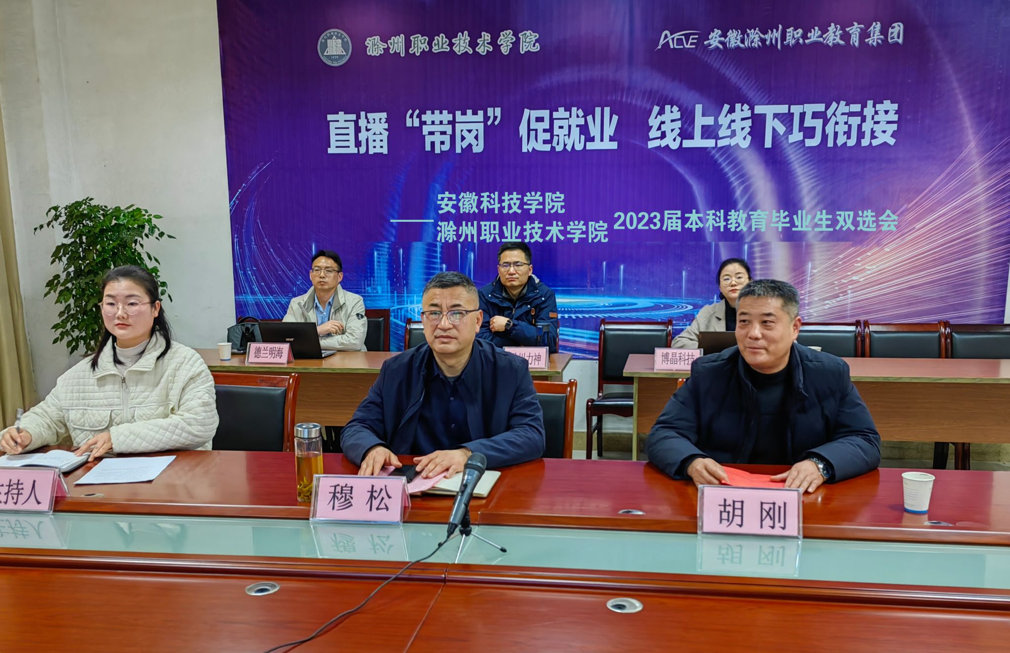 为贯彻落实国家关于提高毕业生就业质量的要求,拓宽毕业生就业渠道,推动从实习到就业一体化紧密衔接。2月17日下午,永利官网举办2023届本科教育毕业生双选会,校领导走上屏幕直播“带岗”。校长助理、招生就业处处长、安徽滁州职教集团秘书长穆松,市人力资源和社会保障局就业科科长胡刚,滁州市德兰明海新能源科技有限公司、博晶科技(滁州)有限公司、滁州力神新能源科技有限公司等三家企业负责人及招就处相关工作人员参加直播,2023届本科教育毕业班师生和专科未就业学生观看直播并积极参加互动。