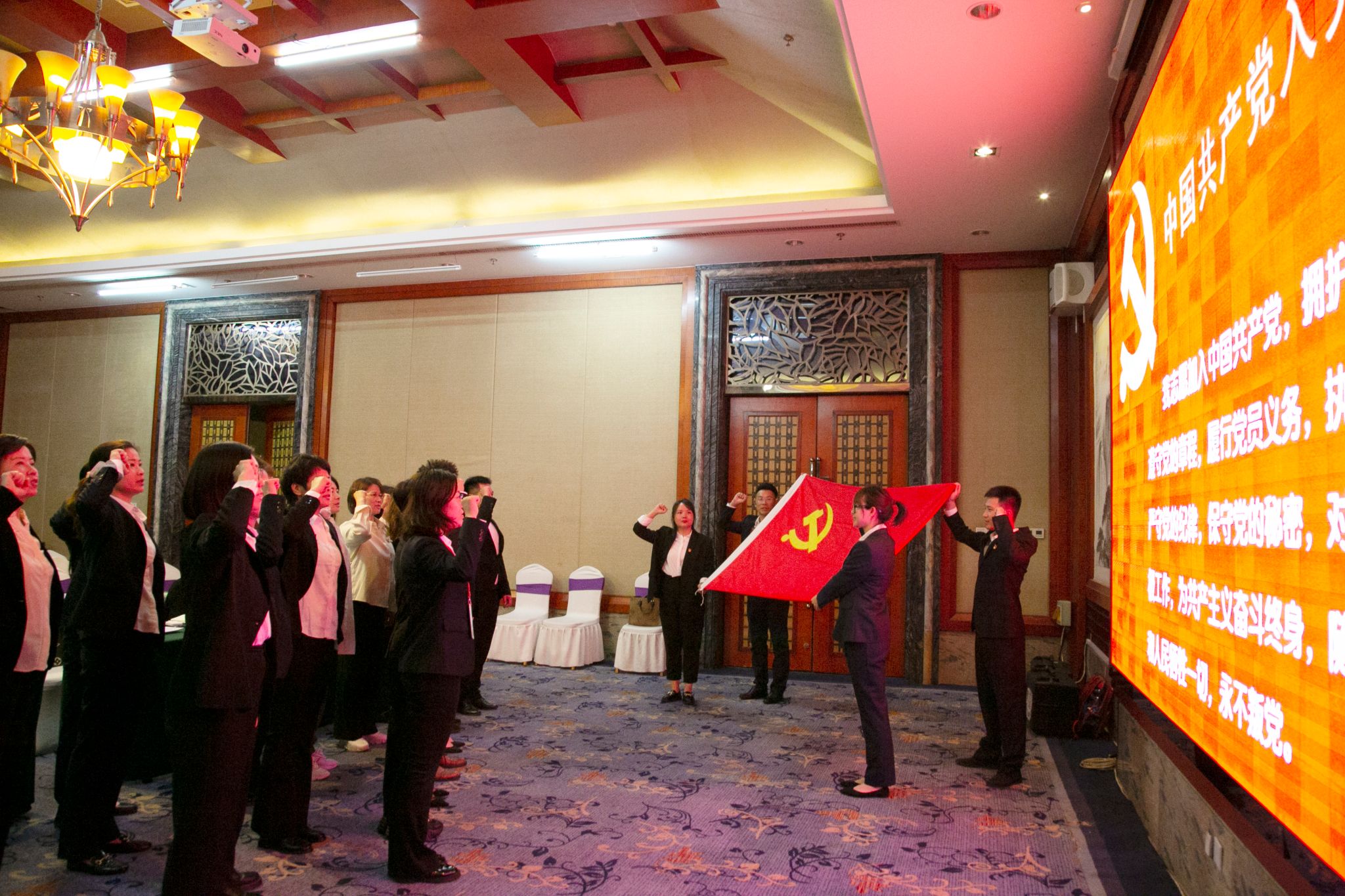 会议还成立了安徽省第十五届运动会高校部啦啦操比赛临时党支部,选举了临时党支部书记。4月19日当晚,临时党支部还开展党支部活动,重温入党誓词,活动中,全体党员纷纷表示,他们将坚定不移遵守入党誓词,始终以一名共产党员的标准来严格要求自己,充分发挥党员先锋模范作用,以饱满的热情、昂扬的斗志、务实的作风投入到执裁工作中。