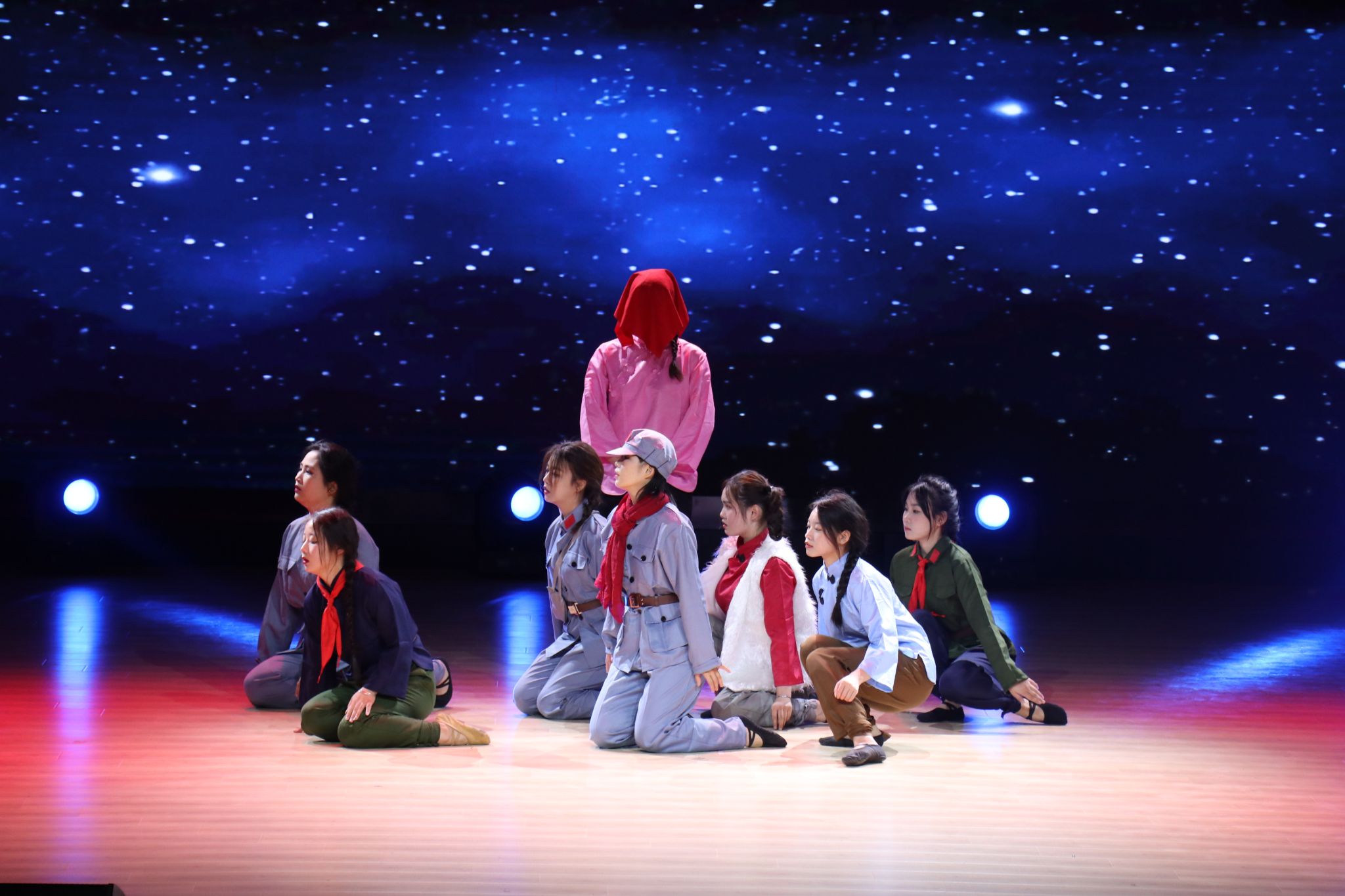 第一篇章由机械与汽车工程学院带来的情景表演《青春力量》开始,歌舞表演《追寻》、朗诵《奋斗有我》慷慨激昂,声情并茂,激涌出在场观众无限的爱国热情,赢得了现场师生强烈反响,第一篇章在舞蹈《八女投江》中结束。