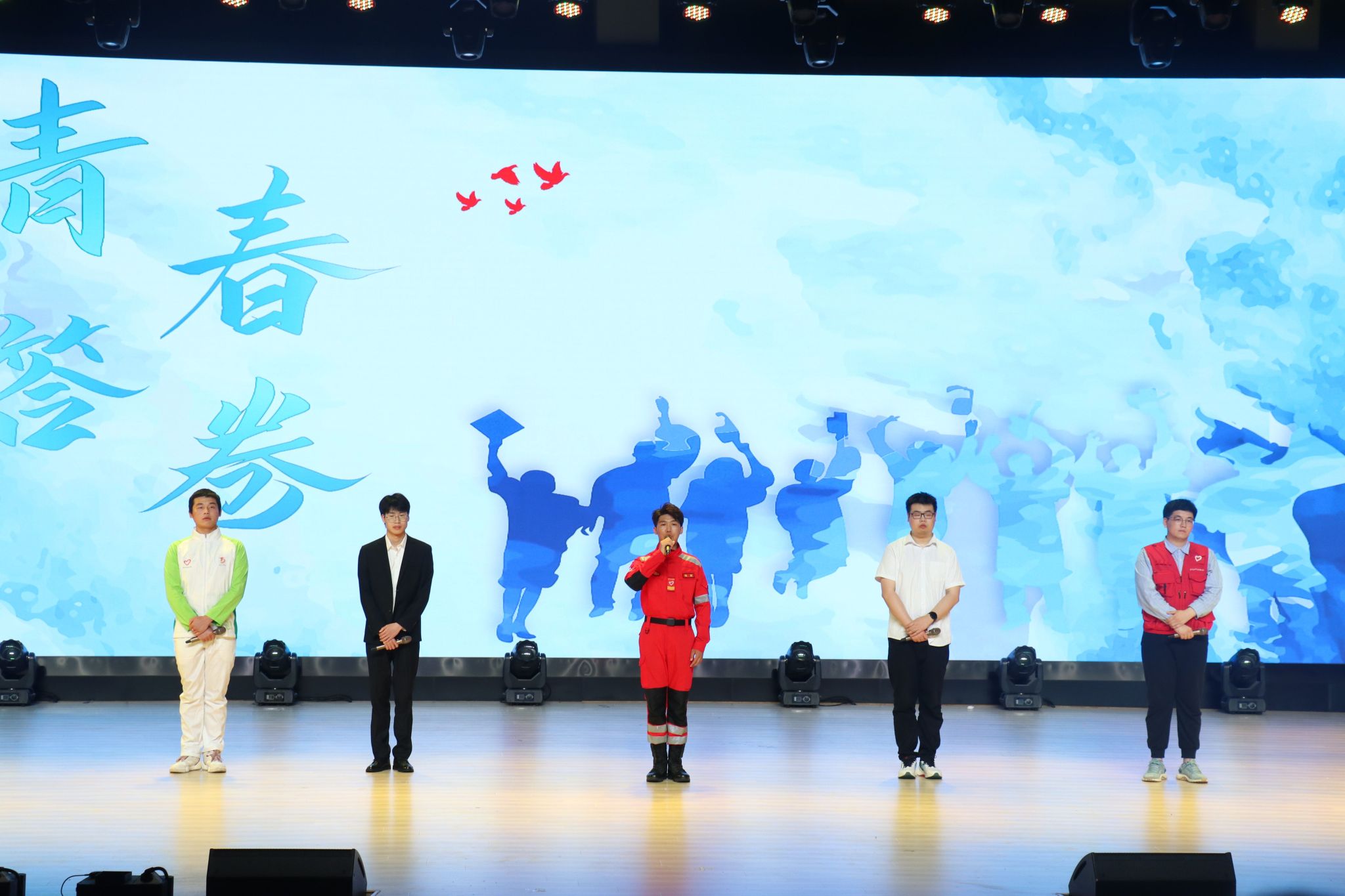 第三篇章分别邀请了在职业技能大赛、创业类大赛、志愿服务、社会实践等活动中获得荣誉的同学上台分享自己成功的经历,随后由团员代表带领在场所有新老团员重温入团誓词。晚会在歌曲《有我》、《再扬帆》中落下帷幕。