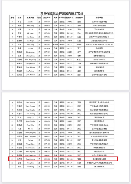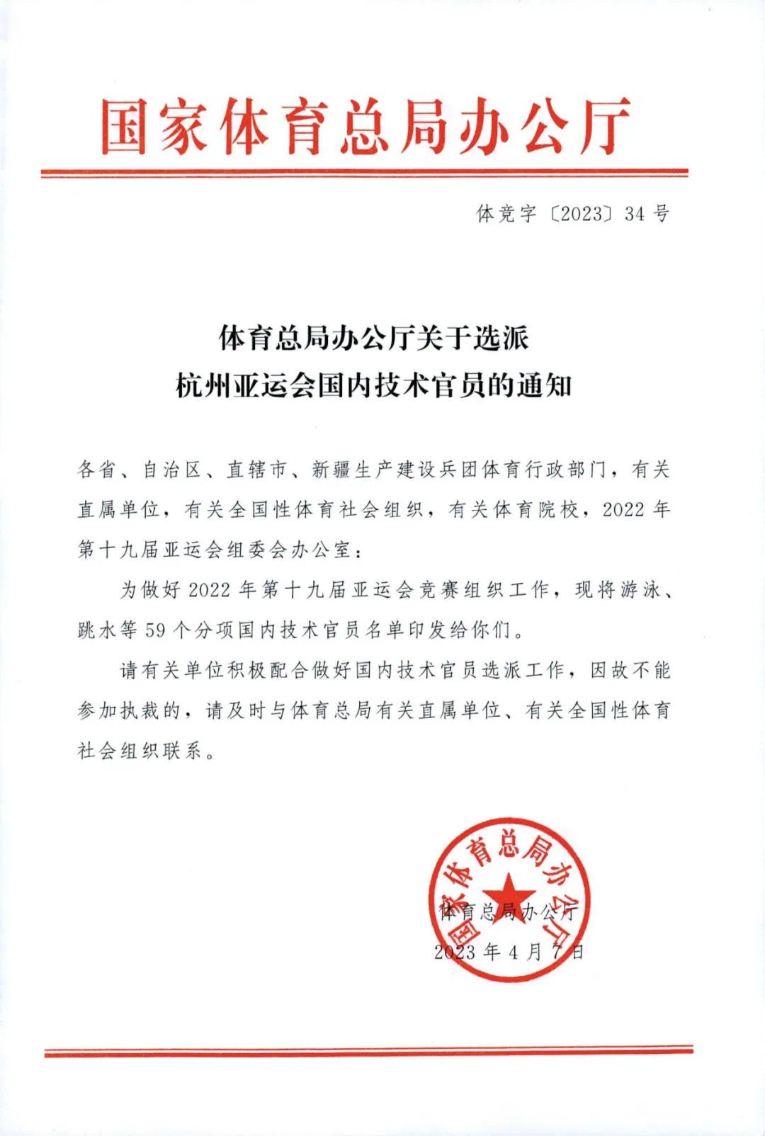 为做好第十九届亚运会竞赛组织工作,国家体育总局办公厅正式发函,永利官网安全保卫处汤庆根老师成功入选杭州亚运会摔跤竞赛项目技术官员。