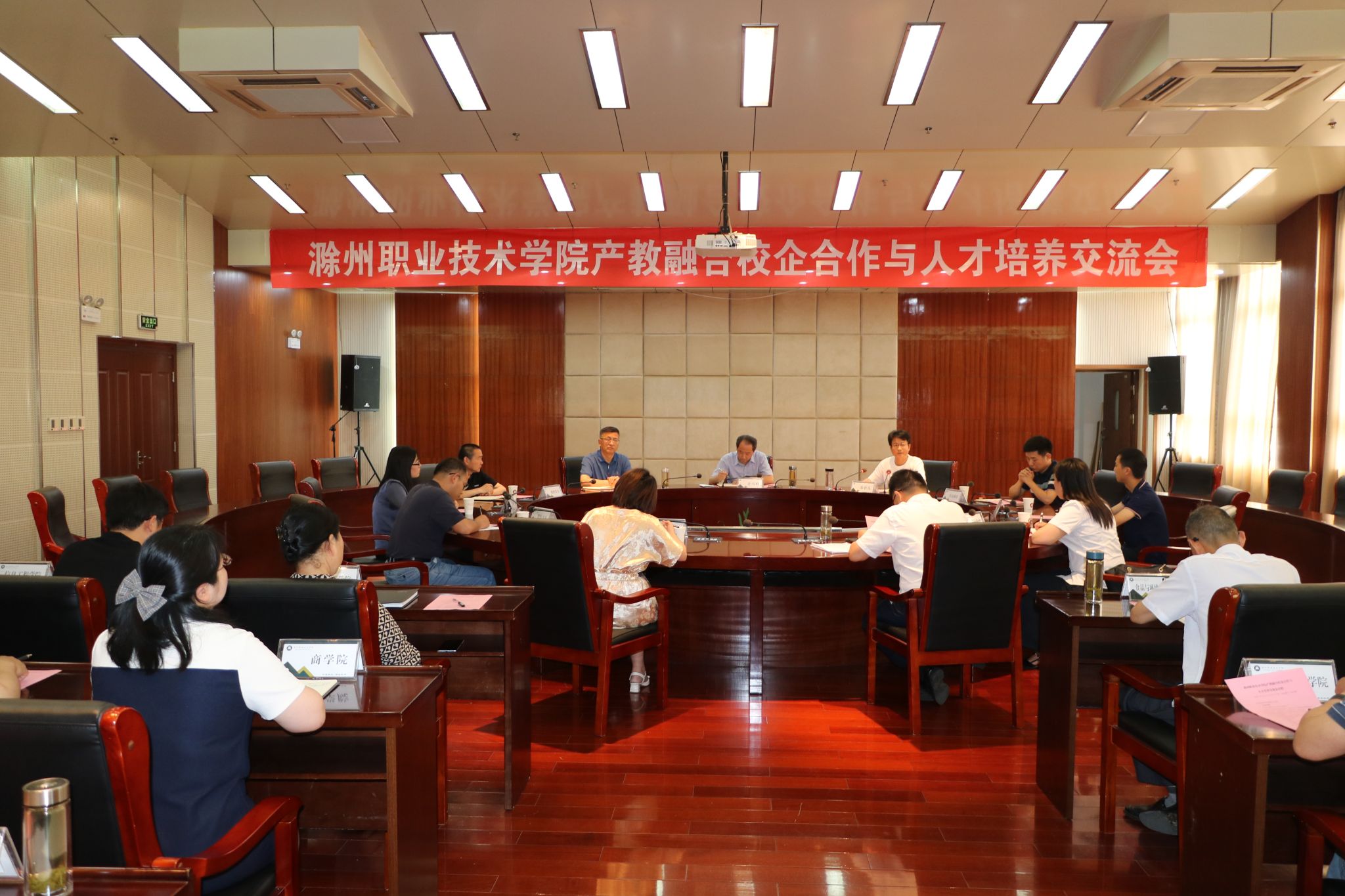 6月15日下午,学校在综合楼11楼会议室召开产教融合校企合作与人才培养交流会,校党委副书记、校长许雪峰,党委委员、副校长苏有良,校长助理、招生就业处处长、安徽滁州职教集团秘书长穆松出席会议,金鹏控股、盼盼食品、惠科光电、隆基乐叶、永强汽车、鲲鹏模具、日泰汽车等多家滁州市行业领军企业代表以及学校教务处、招生就业处、科技处、各二级学院主要负责同志参加了会议。会议由苏有良同志主持。