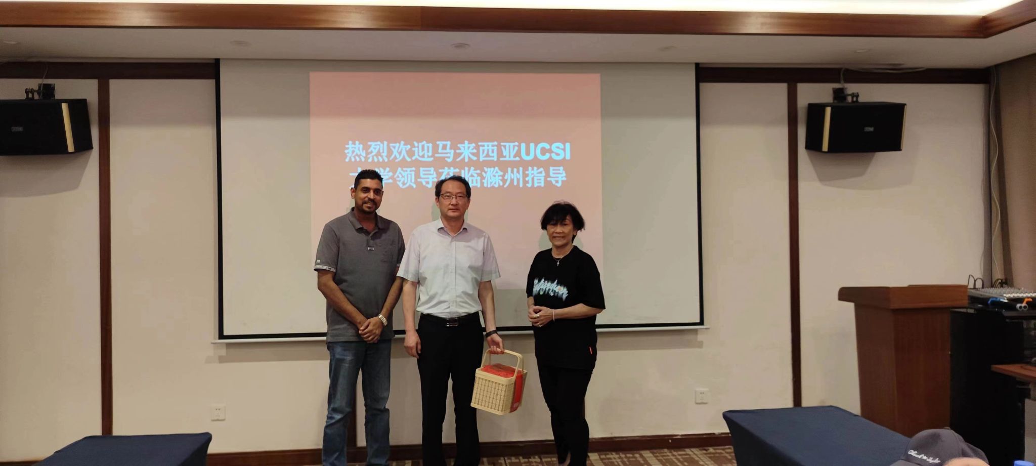 校党委副书记、校长许雪峰在滁州市琅琊山荣逸山水酒店会客厅亲切接见客人,会谈中,许雪峰对思特雅(UCSI)大学高级董事Dr. Katherine Poh一行的到来表示热烈欢迎,对思特雅大学QS世界大学排名进入全球前300名表示祝贺,并向客人介绍了学校发展概况,预祝思特雅大学Dr. Katherine Poh一行在滁愉快。