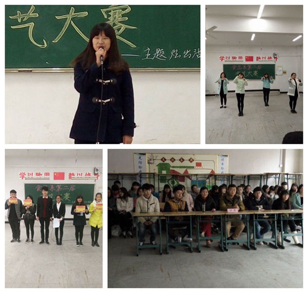 才艺赛吸引了各班级同学踊跃报名,他们纷纷秀出了自己精心准备的节目。经过评比15食品生产班吴艳、袁学海等同学表演的小品《喜与悲》获得一等奖15化工二班张雨同学演唱的《最美的太阳》获得等奖15食品营养班孙沁瑶同学的爵士舞获得等奖15园林班陈兴鹏同学获得最佳人气奖