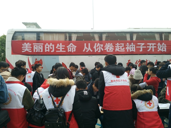 2016年11月30日中午12点,学院红十字会和滁州市中心血站联合举行无偿献血公益活动,在学院老食堂南门成功举行。本次无偿献血活动中,广大同学热情参与,为无偿献血事业奉献出自己的微薄之力。