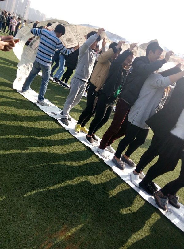 本次活动有车轮滚滚、死亡逃生、十人十一腿。每个活动由负责人为我们讲解游戏的玩法和注意事项。车轮滚滚的活动目标是让我们知道互相合作才能取得胜利活动准备由报纸做的大圆环2个活动过程站在大圆环做成的“车轮”里,大家同时走动,走到终点为胜等。各系人员都积极参与进来,组织人员很井然有序的安排各系比赛,现场显得和睦而不缺乏激情。