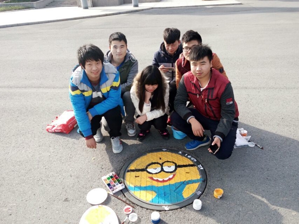 此次活动,由我16级新生,共九个班级参加,每个班级都有自己独特的创意,都有自己独特的风格!一个个圆形井盖在同学们的“神笔”下描绘成不同风格的图案,有“偷星九月天”;有龙猫;有“煎蛋”;还有可爱的卡哇伊动画形象。他们选取的都是一些能够在大学生中传递正能量的图案。