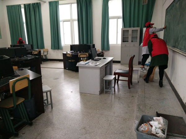 为了让同学们有一个良好的学习环境,生活部干事们都积极的参加打扫活动中来。在本次志愿活动中,生活部所有大一干事们穿着小红色志愿者服装,衬托生活部干事热情似火,表现其部们的组织性和团结性。在这次活动当中很多大一干事都是刚结束课程就立刻过来参加志愿者活动,大一干事们都非常活跃,并没有因为课程的劳累而有丝毫的松懈与怠慢。清理教室,擦拭桌子与窗户,有的教室墙壁会有很多污垢,在大家的欢声笑语中,我们还给了墙壁一个整洁靓丽的面孔。