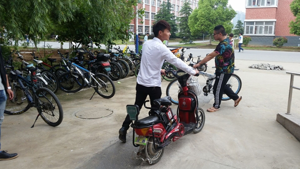 2016年5月23日,传媒系学生会以志愿者身份帮助宿管把8号宿舍楼前面的自行车摆放整齐。